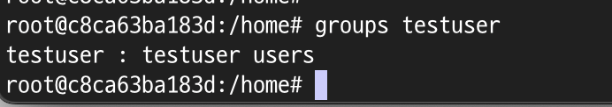 groups testuser 명령어를 통해 testuser의 groups를 확인하면 testuser, users 가 기본적으로 존재하는 것을 확인할 수 있습니다.